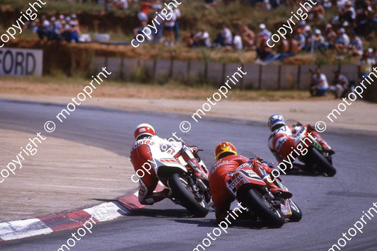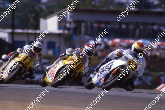 1985 MC SA GP 500cc 42 Dave Petersen 500 Honda 30 Sito Pons 13 Franco Uncini both HB Suzukis (courtesy Roger Swan)294