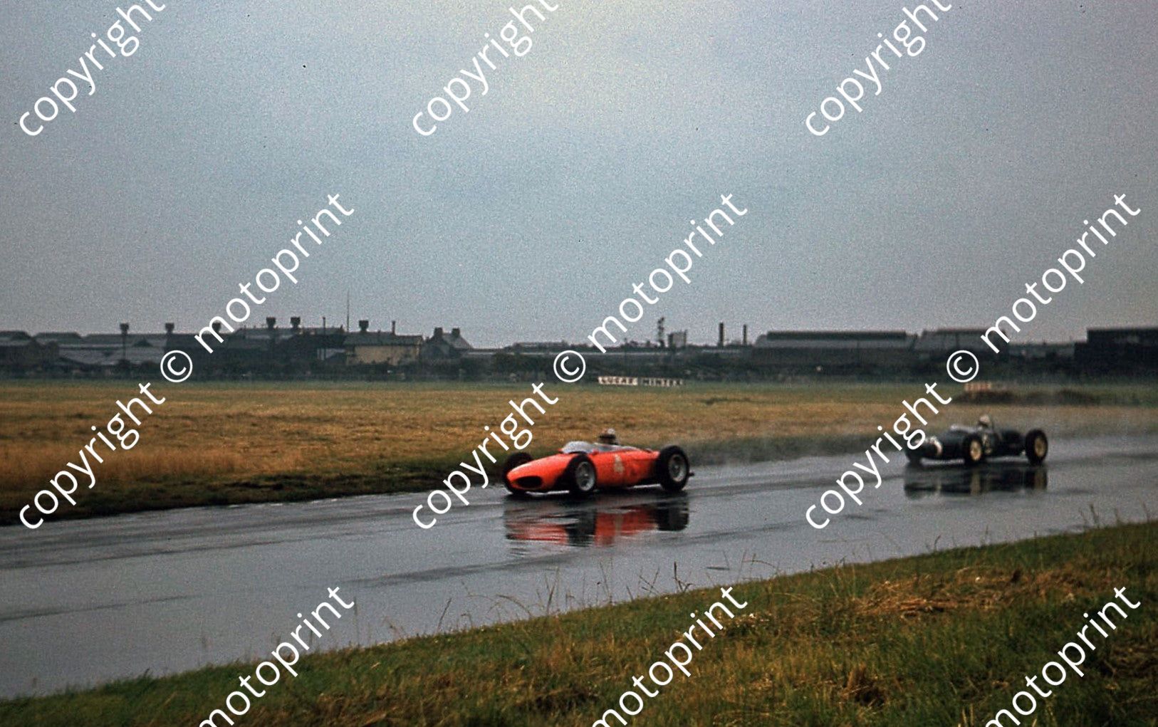 1961 British GP Aintree Von Trips Ferrari 156 sharknose leads Moss Lotus 18-21 300dpi tar A4009 edited