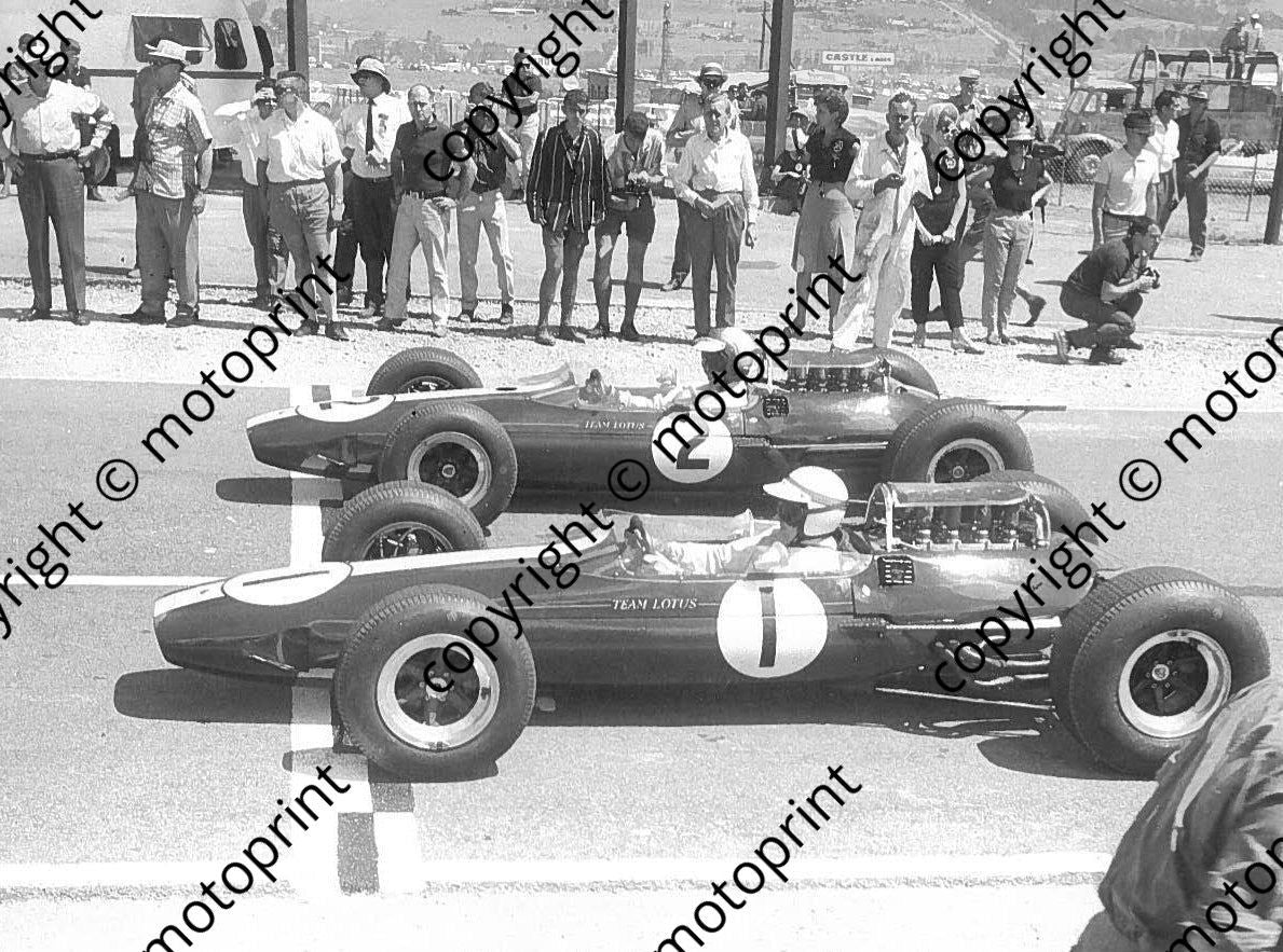 1964 Rand GP Jackie Stewart and Mike Spence Lotus 33s. Stewart about to shear one half shaft and damage other (courtesy Ken Stewart)