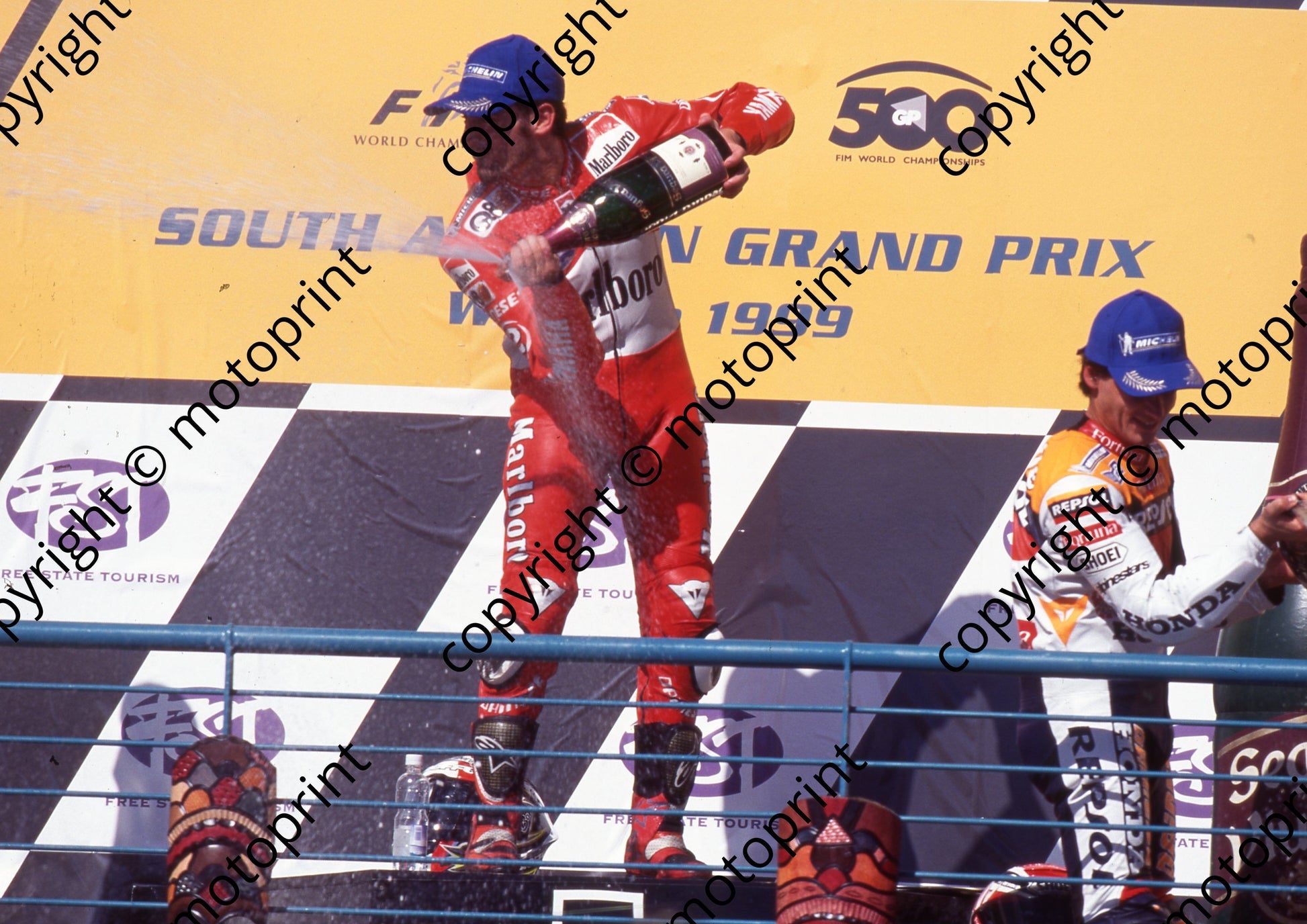 1999 Phakisa SA GP 500 podium Max Biaggi 1st Alex Criville 3rd (Watling Photo) (2)